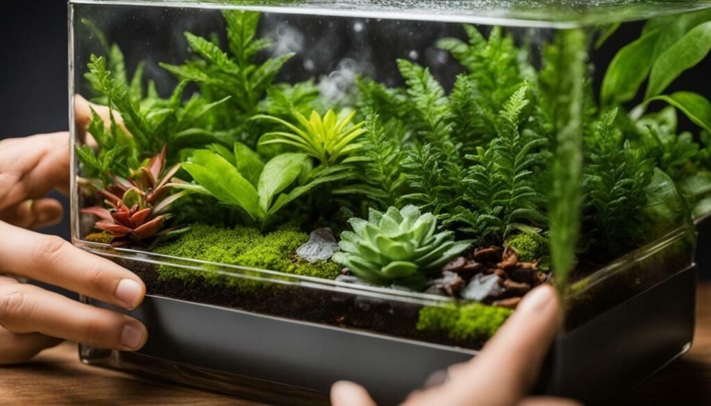 Avoid overcrowding by using small terrarium plants or tiny terrarium plants.